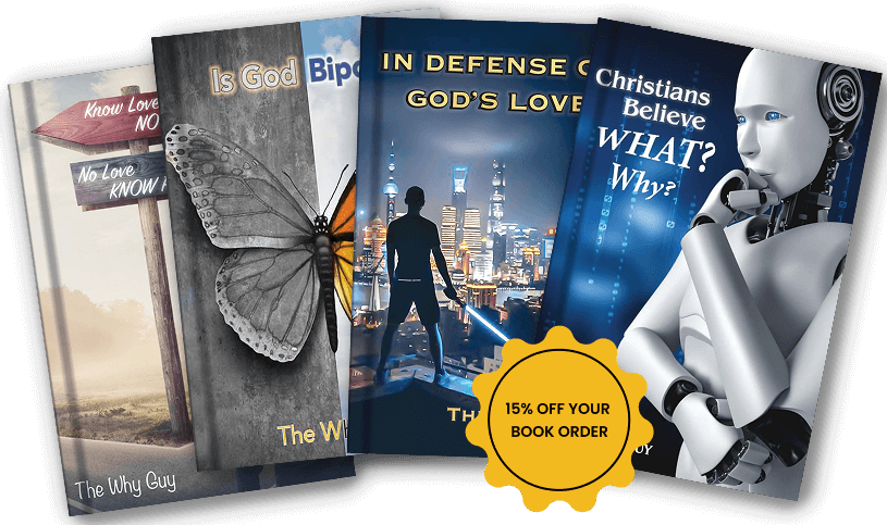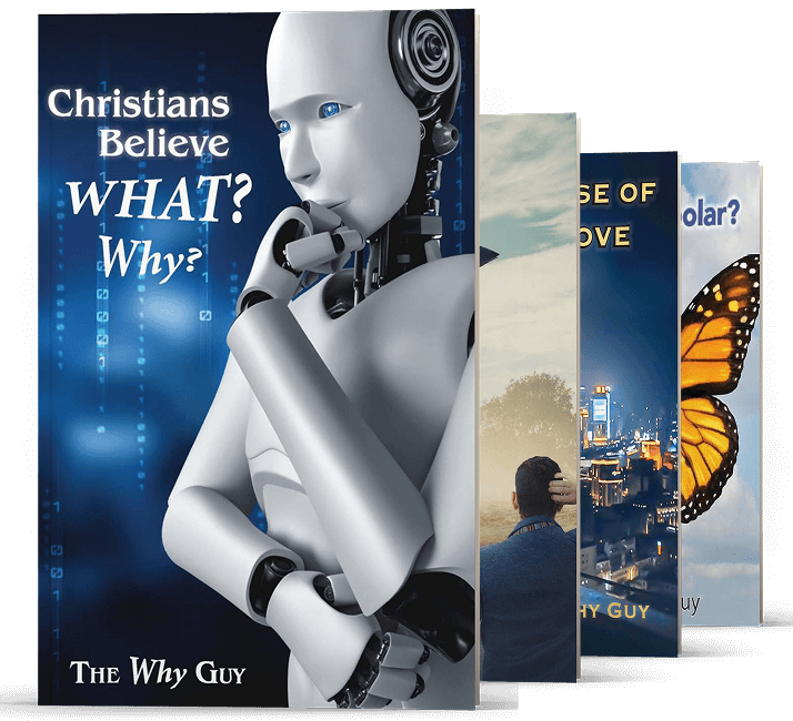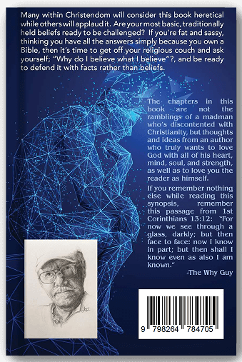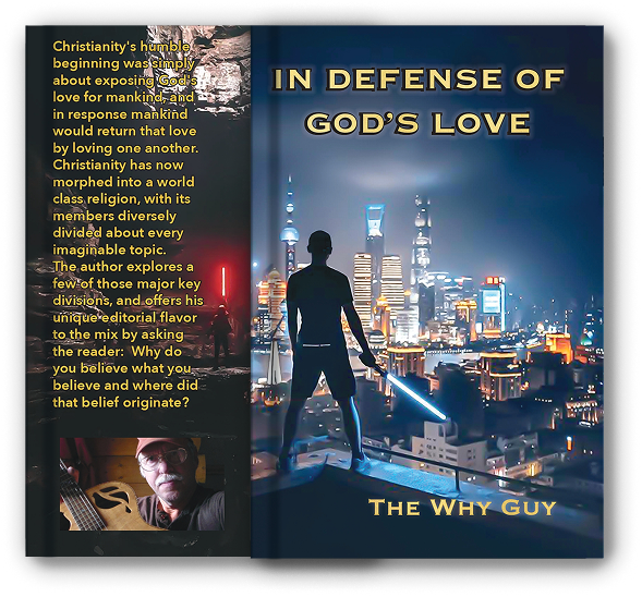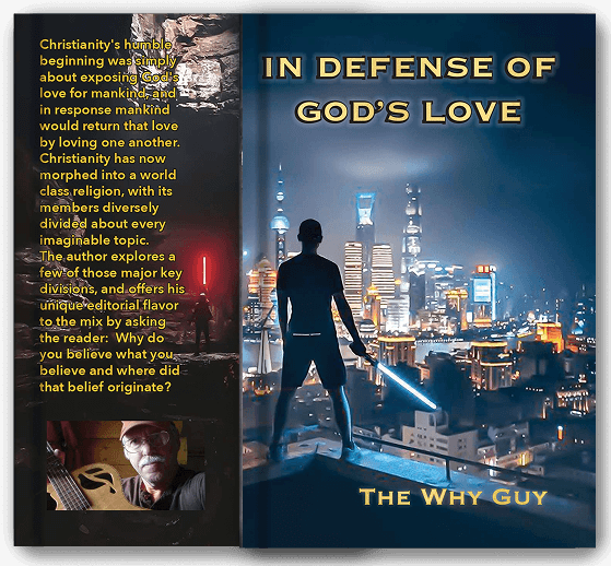 The Why Guy (a pen name) is a recently widowed husband who was happily married to his beautiful wife for 43 years. Heartbroken, he now pours the remainder of his love into his two adopted dogs. He does not claim to be a Bible scholar or theologian—he sees himself simply as a critical thinker with strong opinions shaped by a lifetime of asking “Why?” A published author, songwriter, and musician, he has played in several secular bands, but nothing ever fulfilled him like leading people in worship. At age 15 he had a dramatic, life-changing encounter with God that included a vision of Christ. Almost overnight he received the ability to play guitar, and soon joined his church’s praise team. For many years he worked as a private music teacher, giving lessons on guitar, banjo, mandolin, and bass to students aged 8 to 80